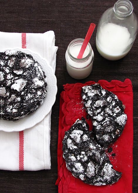 2. In a mixer with the paddle attachment, beat together 2 1/2 cups of the sugar, the oil, butter and corn syrup to blend. Beat in the eggs, egg yolk, vanilla and peppermint extract. Then on low, beat in the melted chocolate. Add the flour mixture and beat in on low speed. Wrap the dough in plastic and refrigerate for several hours or overnight.